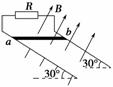 9.如图9-3-24所示,平行金属导轨与水平面间的倾角为θ,导轨电阻不计,与阻值为R的定值电阻相连,匀强磁场垂直穿过导轨平面,磁感应强度为B.有一质量为m长为l的导体棒从ab位置获得平行于斜面的,大小为v的初速度向上运动,最远到达a′b′的位置,滑行的距离为s,导体棒的电阻也为R,与导轨之间的动摩擦因数为μ.则( )