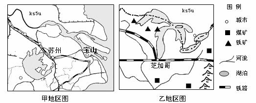 19.图中甲、乙两地产业发展叙述正确的是( )