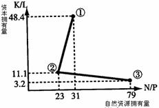 右图是“中、日、韩三国经济要素互补性”示意图,图中资本拥有量(K/L)是指资本/劳动力,自然资源拥有量(N/P)是指每10万人口·平方千米的自然资源量。读图完成25-26题。