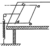 18.(12分)、如图所示,在一光滑水平的桌面上,放置一质量为M,宽为L的足够长“U”型框架,其ab部分电阻为R,框架其它部分的电阻不计。垂直框架两边放一质量为m、电阻为R的金属棒cd,它们之间的动摩擦因数为μ,棒通过细线跨过一定滑轮与劲度系数为 k 的另一端固定的轻弹簧相连。开始弹簧处于自然状态,框架和棒均静止。现在让框架在大小为2μmg的水平拉力作用下,向右做加速运动,引起棒的运动可看成是缓慢的。水平桌面位于竖直向上的匀强磁场中,磁感应强度为B。