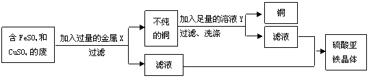 (2)设计除去铜离子,回收硫酸亚铁晶体和铜的实验方案,讨论有关问题: