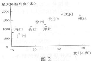 3.据图2反映的变化趋势,对下列各地最大降温高度的推断,正确的是