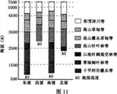 16.该山3000米以上东西坡各带分布差异反映出同海拔东坡比西坡