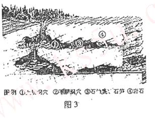 某校地理小组学生在滨海公路沿线的山坡上,看到了几千年前形成的海浪侵蚀地貌。结合图文材料,回答3-4题。