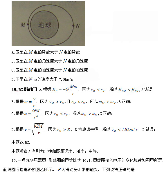 18.1970年4月24日,我国自行设计、制造的第一颗人造地球卫星“东方红一号”发射成功,开创了我国航天事业的新纪元。“东方红一号”的运行轨道为椭圆轨道,其近地点的