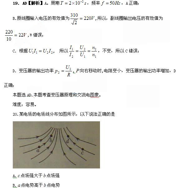 20.BD[解析]A.根据电场线疏密表示电场强度大小,