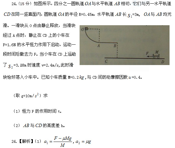 为撤去力F后到滑块落入小车中的时间。