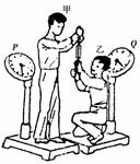 如图2-1-18所示,质量均为m的甲、乙两同学,分别静止于水平地面的台秤P、Q上,他们用手分别竖直牵拉一只弹簧秤的两端,稳定后弹簧秤的示数为F,若弹簧秤的质量不计,下列说法正确的是( )