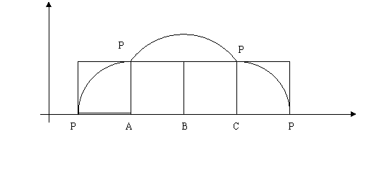 个圆,该圆半径为1,然后以B点为中心,滚动到C点落地,其间是以BP为半径,旋转90°,然后以C为圆心,再旋转90°,这时候以CP为半径,因此最终构成图象如下: