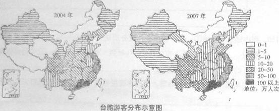 (九)随着海峡两岸联系的不断增强,台胞游客对大陆旅游市场的影响与日俱增。结合所学知识,读图回答问题。(10分)