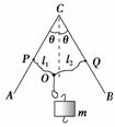 解析:系统最终将处于平衡状态,两个轻质小环P、Q分别受到两个力作用,一是框架对它们的支持力,垂直AC、BC边向外,二是细绳拉力,这两个力是平衡力.根据等腰三角形知识可知两细绳与水平方向的夹角相等,对结点O受力分析,其水平方向的合力为零,可得出两细绳受到的拉力相等,即F1∶F2等于1∶1,本题选A.注意题目中提到的“轻质小环”可以不计重力,绳子的长短并不能代表力的大小,要与力的平行四边形定则中的边长区别开来,力的平行四边形定则中边长的长与短代表着力的大小.