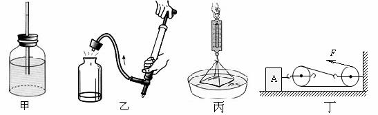 。如图丙所示,用细线将干净的玻璃板吊在弹簧测力计下面,记下弹簧测力计的示数。然后使玻璃板接触水面,稍稍用力向上拉玻璃板,发现弹簧测力计