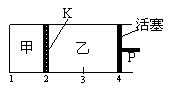 2C(g)+D(g);DH<0。现将1 mol A和2 mol B加入甲容器中,将4 mol C和2 mol D加入乙容器中,此时控制活塞P,使乙的容积为甲的2倍,t1时两容器内均达到平衡状态(如图1所示,隔板K不能移动)。下列说法正确的是( )