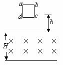 5.如图所示位于竖直平面的正方形平面导线框abcd,边长为L=10cm,线框质量为m=0.1kg,电阻为R=0.5Ω,其下方有一匀强磁场区域,该区域上、下两边界间的距离为H( H> L),磁场的磁感应强度为B=5T,方向与线框平面垂直。今线框从距磁场上边界h=30cm处自由下落,已知线框的dc边进入磁场后,ab 边到达上边界之前的某一时刻线框的速度已达到这一阶段的最大值,问从线框开始下落到dc边刚刚到达磁场下边界的过程中,磁场作用于线框的安培力做的总功是多少?(g=10m/s2)