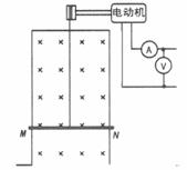 7.如图所示,电动机牵引一根原来静止的、长L为1m、质量m为0.1kg的导体棒MN上升,导体棒的电阻R为1Ω,架在竖直放置的框架上,它们处于磁感应强度B为1T的匀强磁场中,磁场方向与框架平面垂直。当导体棒上升h=3.8m时,获得稳定的速度,导体棒上产生的热量为2J,电动机牵引棒时,电压表、电流表的读数分别为7V、1A,电动机内阻r为1Ω,不计框架电阻及一切摩擦,求: