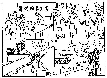 作为社区的志愿者,你与你同班的几名同学每隔一周的星期六到学校附近的社会救济站,为暂时无法回家的老人和儿童做一些力所能及的事。请根据提示及下面图画的内容为学校的壁报写一篇报道。