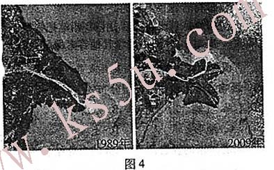 图4为 我国北方某河流入海口1989年和2009年的卫星形象。该河口区河流主流曾于1996年人工改道。读图回答7-8题。