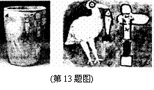 出土于我国河南省的彩陶缸,距今已有6000多年。彩陶缸上有一幅“鹳鱼石斧”图案,如图所示。关于此图案的说法错误的是