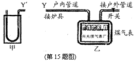 如图所示,煤气管道包括户外和户内两部分,二者之间连接着一只煤气表。工人师傅给每户安装完户内管道后,都要检查一下管道是否漏气。有一种检测装置,在两端开口的透明U型管中装有水,当U型管两端压强相等时,两侧水面相平。检测时,关闭开关,用力向户内管道口Y内吹气,然后迅速将U型管的Y′一端与Y相连接,U型管内水面出现高度差,继续观察U型管中水面的变化