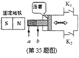 如图所示,将线圈ab缠绕并固定在活塞一端,利用其与固定磁