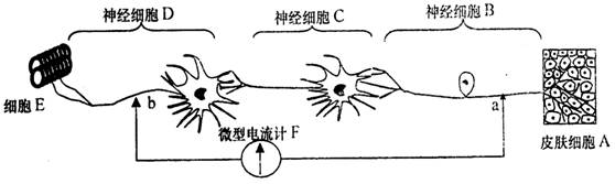 下图为人体某一反射弧的示意图,a、b为微型电流计F的两极,下列有关叙述不正确的是( )
