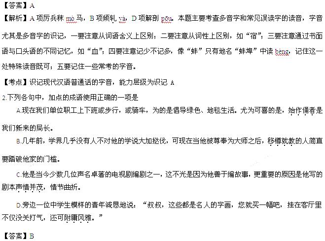 [考点定位]正确使用词语(包括熟语),能力层级为表达应用 D