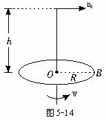 (6分)如图5-14所示,半径为R的圆板置于水平面内,在轴心O点的正上方高h处,水平抛出一个小球,圆板做匀速转动,当圆板半径OB转到与抛球初速度方向平行时,小球开始抛出,要使小球和圆板只碰一次,且落点为B,求:(1)小球初速度的大小.(2)圆板转动的角速度。