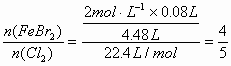 FeBr2溶液80mL中通入4.48L氯气(标准状况下),充分反应后,写出对应的离子方程式。