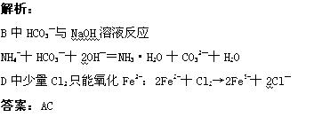 c(NO3-)>c(Ba2+)>c(OH-)>c(NH4+),B正确。