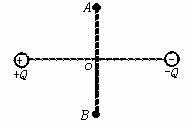 4.如图所示,一电子沿等量异种电荷的中垂线由A→O→B匀速飞过,电子重力不计,则电子所受另一个力的大小和方向变化情况是![]()