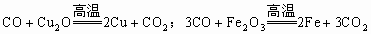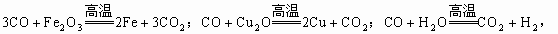 。氧化物(I)是氧化铁,联想到工业炼铁原理,不难想到氧化物(II)是CO,依次推断其他物质。符合上述条件的反应有:![]()