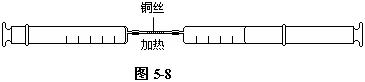 把长约2cm的一束细铜丝装进一根长约5-6cm的普通玻璃管中部,两端用两节橡皮管分别跟两只注射器(其中一只注射器留出50mL空气,另一只注射器不留空气)连接起来,使之成为一个密闭系统(如图5-8)。推动注射器活塞,空气可以通过装铜丝的玻璃管在两只注射器间来回传送,不会泄漏。