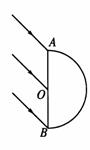 ,现有一束平行光线以45°角入射到AB面上后,经折射从半圆面上的部分位置射出。试求半圆柱面能被照亮的部分与整个半圆柱面的面积之比。