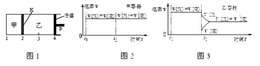 mol A和2 mol B加入甲容器中,将4 mol C和2 mol D加入乙容器中,此时控制活塞P,使乙的容积为甲的2倍,t1时两容器内均达到平衡状态(如图1所示,隔板K不能移动)。下列说法正确的是(