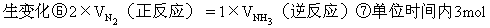 物中各物质的百分组成不变,化学反应达到平衡状态。我们不仅要了解概念的定义,而且还应了解其表现的多样性和其实质。误选A的原因是将化学反应速率和化学平衡中的正、逆反应速率混为一谈。教材中给反应速率下了如下定义:通常用单位时间内反应物的浓度减小或生成物的浓度增大来表示,这仅表示是正反应速率。另由化学反应中各物质的变化量与反应方程式的系数成比例,推导出:在化学反应中各物质的反应速率与方程式的系数成正比,即①所示,也只能表示正反应速率,而不能表示正、逆反应速率之间的关系。⑥说明:N2减少的速率和NH3(作为逆反应的反应物)减少的速率与方程式的系数成正比,如单位时间内1mol·L-1的氮气参加反应,生成2mol·L-1的氨,同时2mol·L-1的氨气也参加反应生成1mol·L-1的氮气,正、逆反应速率相等,应为平衡的标志。