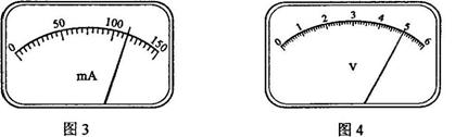(3)在某一温度。电路中的电流表、电压表的示数如图3、4所示。电流表的读数为115mA ,电压表的读数为5.00V。此时等效电阻RL的阻值为3.5Ω;热敏电阻所处的温度约为64.0℃。