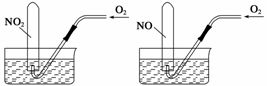 3.如图所示,相同条件下,两个容积相同的试管分别装满NO2和NO气体,分别倒置 于水槽中,然后通过导管缓慢通入氧气,边通边慢慢摇动试管,直到两个试管内充满液 体。假设试管内的溶质不向水槽中扩散,则两个试管内溶液物质的量浓度之比为( A )