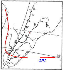 (2)描述区域内20℃等温线的走向,并分析其影响因