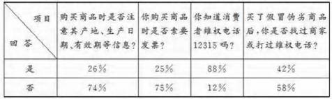 社会生活中,中学生消费者权益受到侵犯的事情时有发生。某校在“3·15”消费者权益保护日来临之际,就中学生消费维权问题傲了一次问卷调查,调查后的统计数据如下: