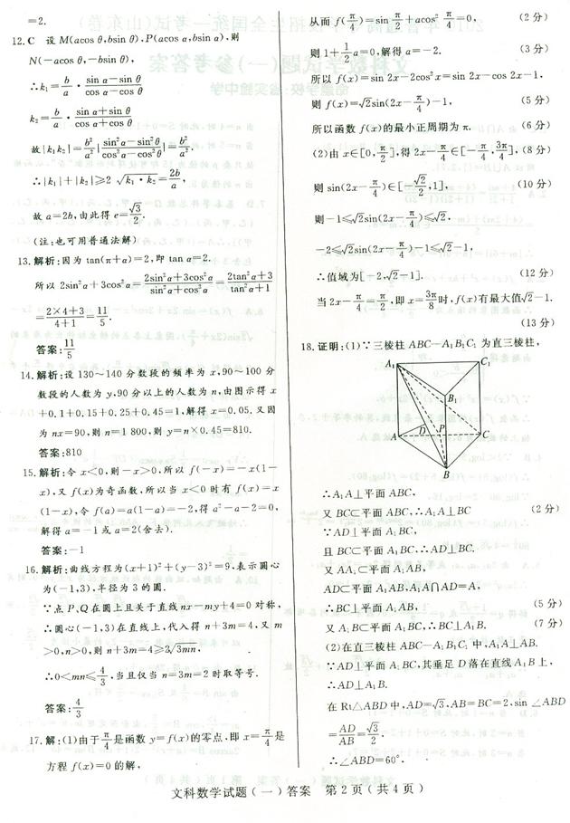 14.三市高三数学调研考试中,对90分以上(含90分)的成绩进行统计,其频率分布直方图如图所示,著130-140分数段的人数为90人,那么90-100分数段的人数为 。