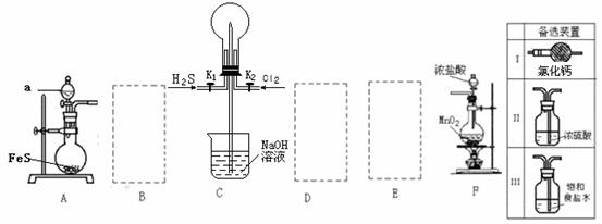 13.(11分)某学生利用以下装置探究喷泉实验。其中A、F分别为硫化氢和氯气的发生装置,C为纯净干燥的氯气与硫化氢反应的装置。