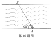 16. 若河岸的两边平行,河宽为900米,一只船由河岸的A处沿直线方向开往对岸的B处,AB与河岸的夹角是600,船的速度为5米/秒,求船从A到B处约需时间几分。(参考数据: