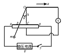 15.ÈçͼËùʾÊÇÒ»ÖÖÐüÇòʽ¼ÓËÙ¶ÈÒÇ.Ëü¿ÉÒÔÓÃÀ´²â¶¨ÑØË®Æ½¹ìµÀ×öÔȼÓËÙÖ±ÏßÔ˶¯µÄÁгµµÄ¼ÓËÙ¶È.mÊÇÒ»¸ö½ðÊôÇò£¬ËüϵÔÚϸ½ðÊôË¿µÄ϶ˣ¬½ðÊôË¿µÄÉ϶ËÐü¹ÒÔÚOµã£¬ABÊÇÒ»¸ù³¤ÎªlµÄµç×èË¿£¬Æä×èֵΪR.½ðÊôË¿Óëµç×èË¿½Ó´¥Á¼ºÃ£¬Ä¦²Á²»¼Æ.µç×èË¿µÄÖеãCº¸½ÓÒ»¸ùµ¼Ïß.´ÓOµãÒ²Òý³öÒ»¸ùµ¼Ïߣ¬Á½ÏßÖ®¼ä½ÓÈëÒ»¸öµçѹ±íV (½ðÊôË¿ºÍµ¼Ïßµç×è²»¼Æ).ͼÖÐÐéÏßOCÓëABÏà´¹Ö±£¬ÇÒOC=h£¬µç×èË¿AB½ÓÔÚµçѹºãΪUµÄÖ±Á÷ÎÈѹµçÔ´ÉÏ.Õû¸ö×°Öù̶¨ÔÚÁгµÖÐʹABÑØ×ųµÇ°½øµÄ·½Ïò.Áгµ¾²Ö¹Ê±½ðÊôË¿³ÊÊúֱ״̬.µ±Áгµ¼ÓËÙ»ò¼õËÙǰ½øÊ±£¬½ðÊôÏß½«Æ«ÀëÊúÖ±·½Ïò¦È£¬´Óµçѹ±íµÄ¶ÁÊý±ä»¯¿ÉÒÔ²â³ö¼ÓËٶȵĴóС.