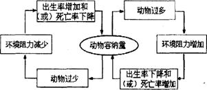 Ⅰ(1)右下图为某生态系统中,一动物种群自动调控图。该动物的数量常常随环境资源的改变而发生波动(注:环境中的动物容纳量是指环境资源能承载的最大动物数量)。