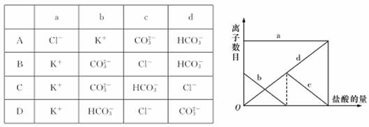 12.向一定量的K2CO3溶液中缓慢滴加稀盐酸,并不断搅拌。随着盐酸的加入,溶液中各离子数目也相应地发生变化。溶液中各离子数目与图中四条曲线的对应关系完全正确的是 ( )