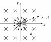 21.如图所示,在坐标系O-XY平面内的O点,有速率相同、方向各异、质量为m、电量为-q的粒子。匀强磁场的磁感应强度为B,方向垂直纸面向里。坐标系中点P的坐标为P(x,y)。不计粒子的重力,不考虑粒子之间的相互作用。下列判断正确的是( )