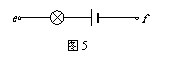⑷一个小灯泡与3V电池组的连接情况如图5所示。如果把图5中e、f两端用导线直接相连,小灯泡可正常发光。欲将e、f两端分别与黑盒子上的两个接线柱相连,使小灯泡仍可发光。那么,e端应连接到 接线柱,f端应连接到 接线柱。