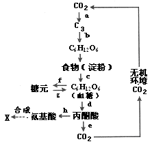 (14分)下图表示碳元素在无机环境和生物群落中的循环利用。请据图回答: