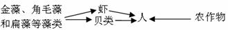 虾和贝类之间的关系为 ;若人的食物有2/3来自农作物,其余来自虾和贝类,则一个人每增加600g体重,按传递效率为10%来计算,生产者需要提供 g的食物。环保人员在岛上的土壤和周边海水中都检测到一定浓度的三氯苯,该物质会沿着