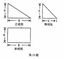 已知某几何体的正视图、侧视图都是直角三角形,俯视图是矩形(尺寸如图所示)。